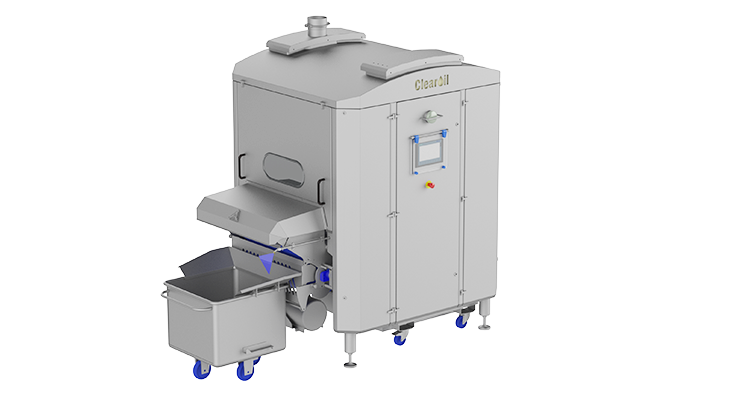 ClearOil is a continuous oil filtration system developed for industrial frying processes. It removes contaminants such as crumbs, flour, sugars and allergens from the frying oil while production is running. By filtering particles down to 1 micron, ClearOil maintains consistent oil quality and prevents the buildup of degradation elements such as free fatty acids. The system operates automatically, separating solids from oil and reducing the amount of oil lost in waste. ClearOil can be integrated with all industrial fryers and installed either directly next to the fryer or in a separate area.
